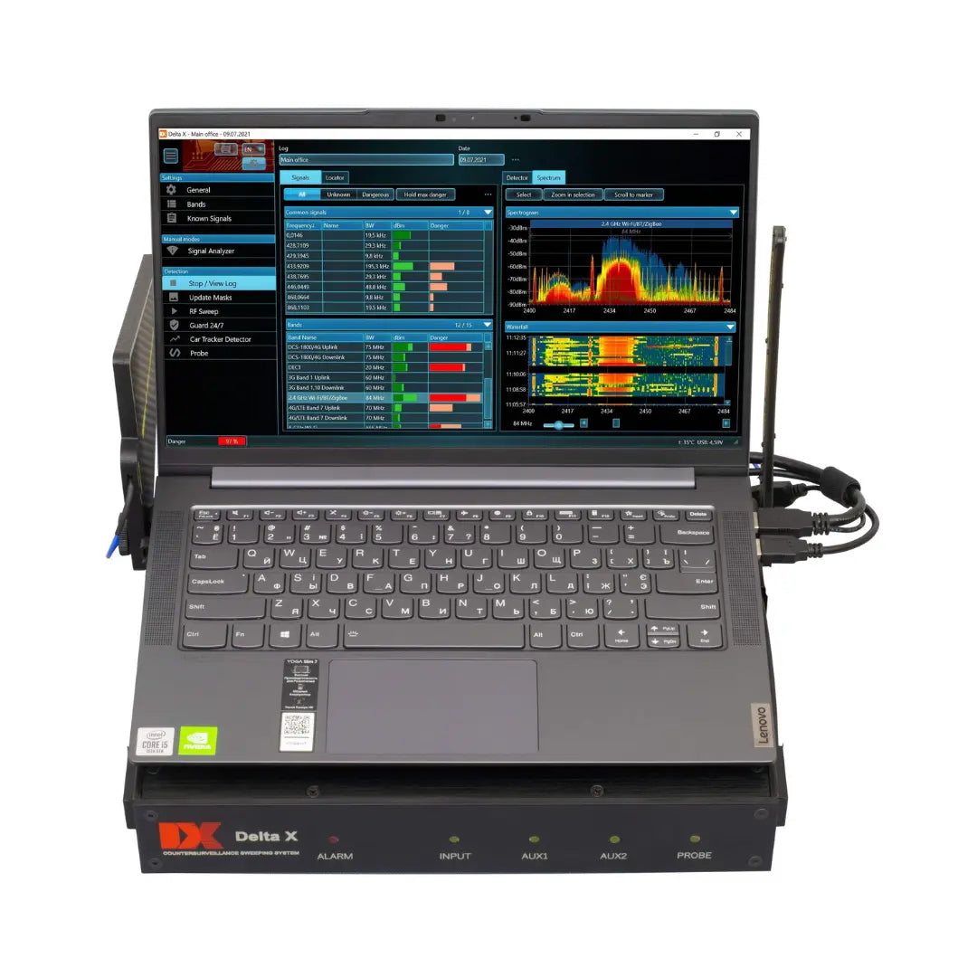 - The built-in spectrum analyzer has 20-50 times higher sensitivity and detection distance compared to conventional RF detectors and near-field receivers