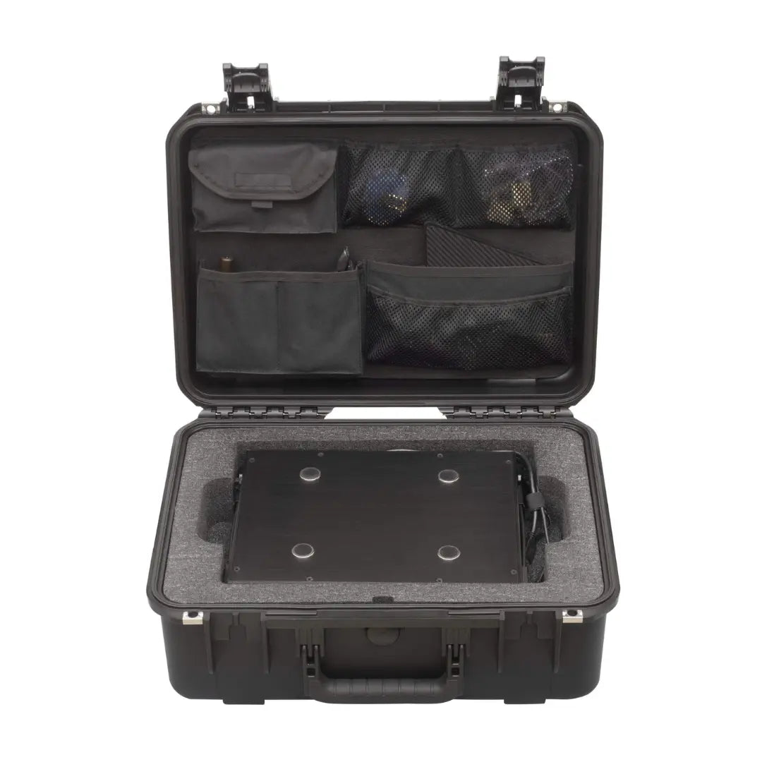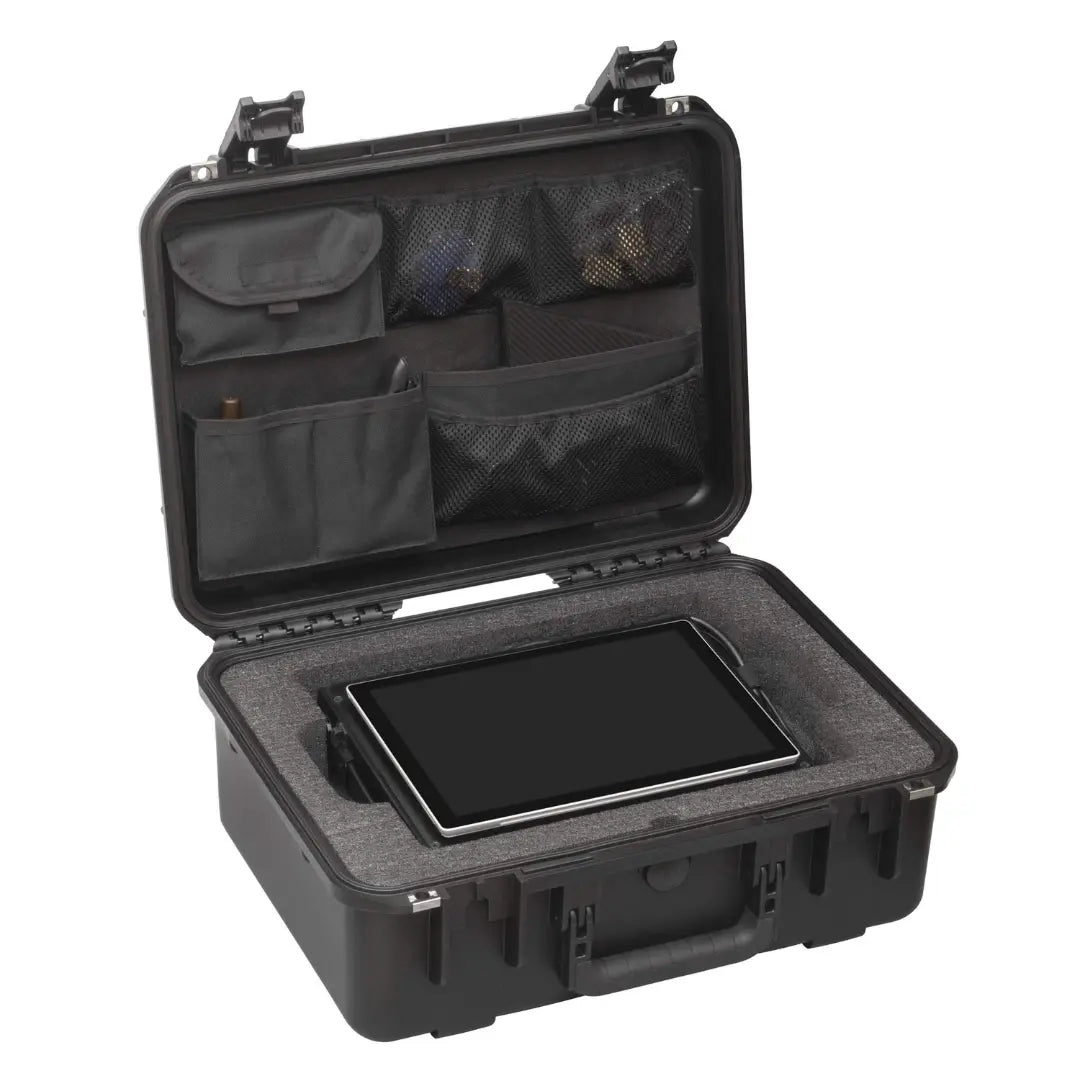 - Magnetic holders provide reliable attachment of the laptop/tablet to the unit while the side handles make it easy to carry the entire system